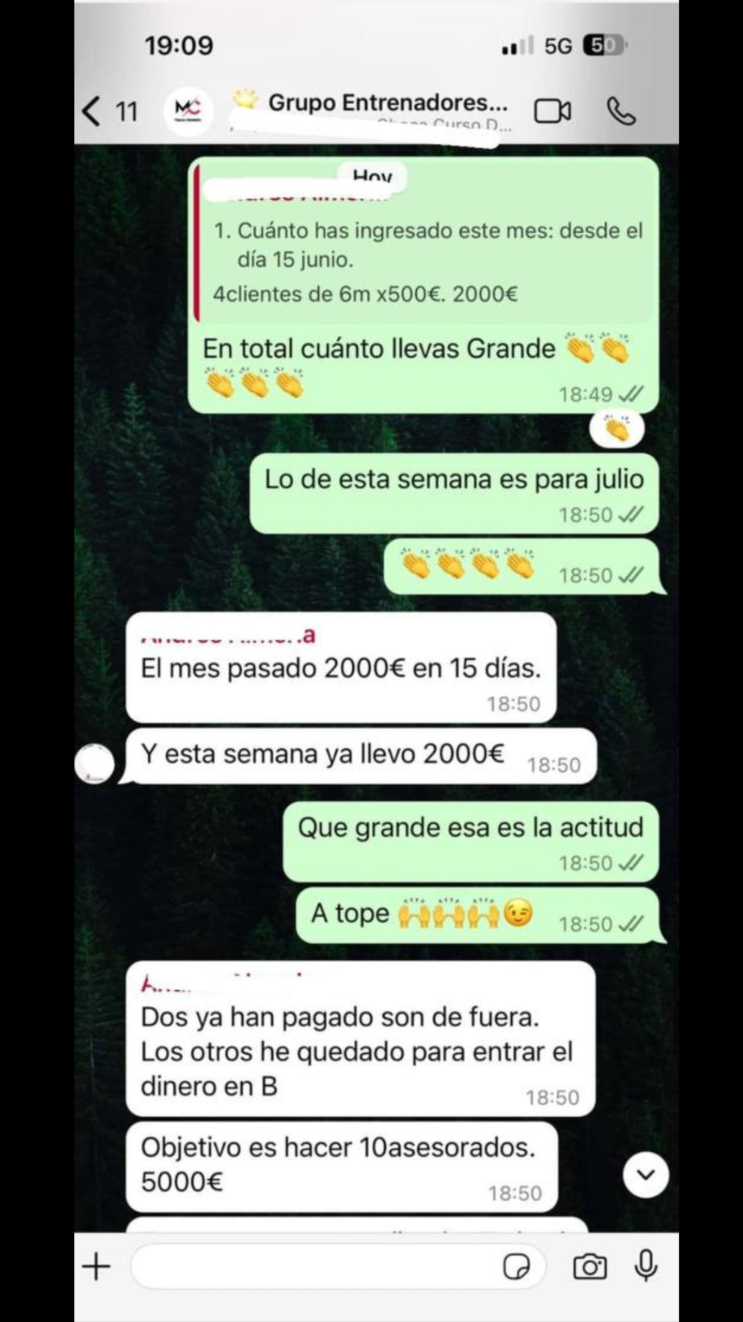 Formarás parte de una comunidad exclusiva de WhatsApp, donde podrás compartir avances y resolver dudas junto a otros entrenadores y el equipo de formación.